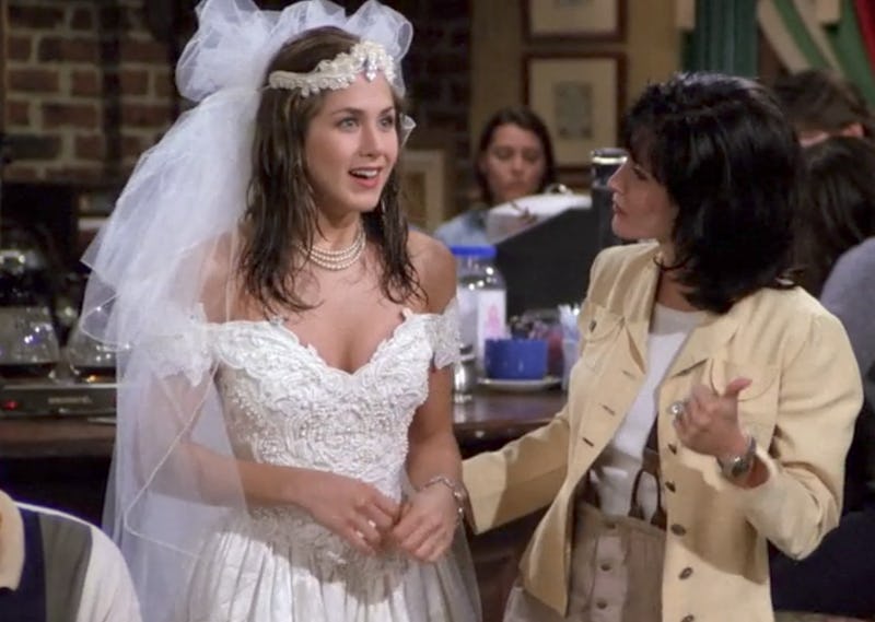 Rachel je bila odjevena u raskošnu bijelu vjenčanicu tipičnu za modu 90-ih godina, a nas je već tad očarala priča o šest prijatelja u dvadesetima. Kao i stalna neizvjesnost hoće li se među njima ipak razviti nešto više.