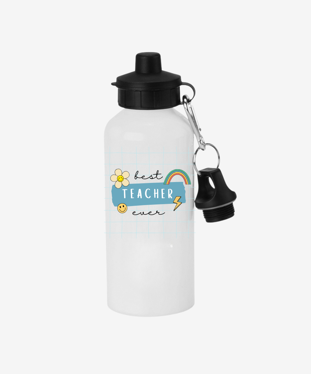 Želite li izraziti iskrenu zahvalnost učitelju ili nastavniku na kraju školske godine ili povodom Dana učitelja? Bočica s natpisom “Best Teacher Ever” u veselom, retro stilu s emotikonima, cvijetom i dugom, idealan je način za to! Ovaj šarmantni i pozitivni dizajn donosi osmijeh i energiju, a pritom je potpuno unisex i prikladan za svakog omiljenog pedagoga. To je poklon koji će se izdvojiti od uobičajenih i koji će biti koristan svaki dan.
