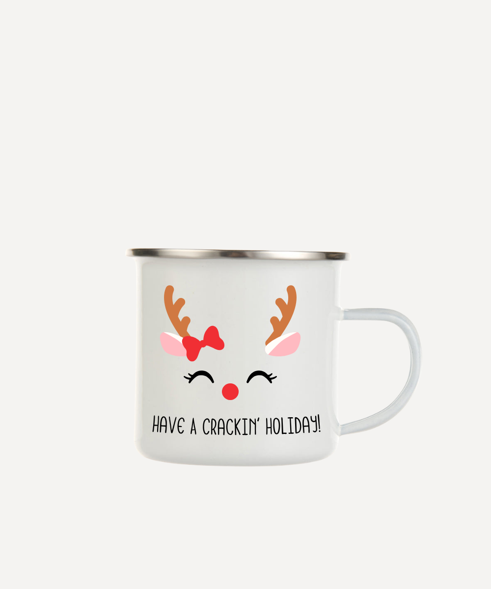 Najslađe lice blagdana! Ovaj predivni emajlirani lončić s motivom soba s velikom crvenom mašnom i veselim izrazom lica i natpisom “Have a Crackin’ Holiday!” savršen je za sve ljubiteljice Božića i slatkih životinjskih motiva.