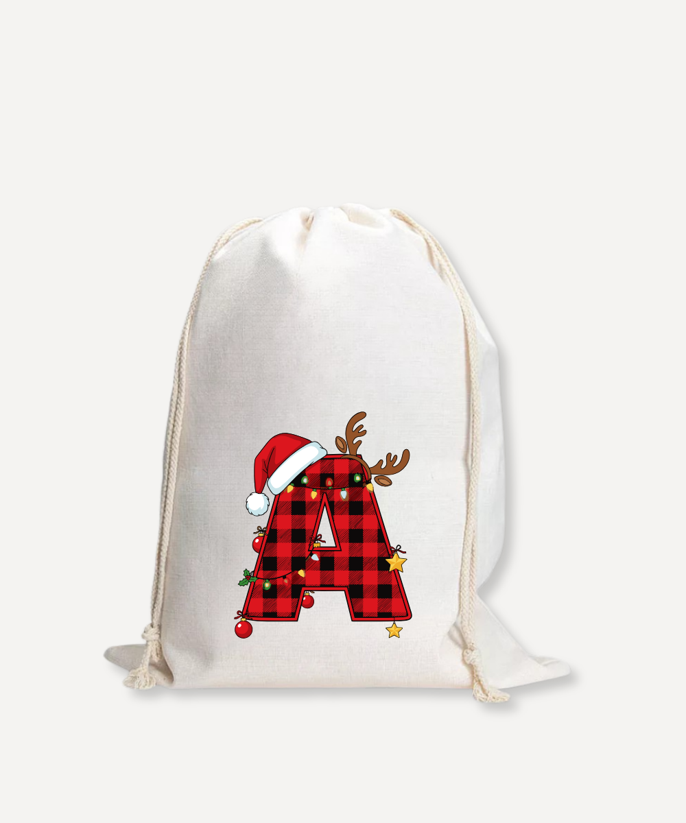 Izrađena od izdržljivog platna s ušivenom vezicom, ova vrećica dimenzija 45×30 cm ima veliki kapacitet i osigurava sigurno pakiranje. Ova personalizacija je posebno korisna u obiteljima s više članova, gdje svatko dobiva svoju jasno označenu, jedinstvenu vrećicu pod borom.