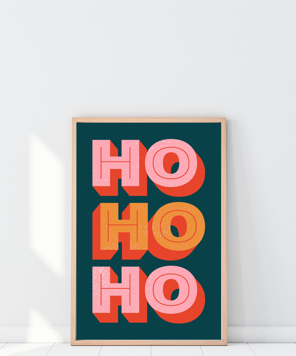 • HO HO HO Natpis: Veliki, 3D natpis “HO HO HO” u tonovima ružičaste i koraljne na elegantnoj tamnozelenoj pozadini. Natpis Djeda Božićnjaka koji prenosi maksimalno blagdansko veselje!