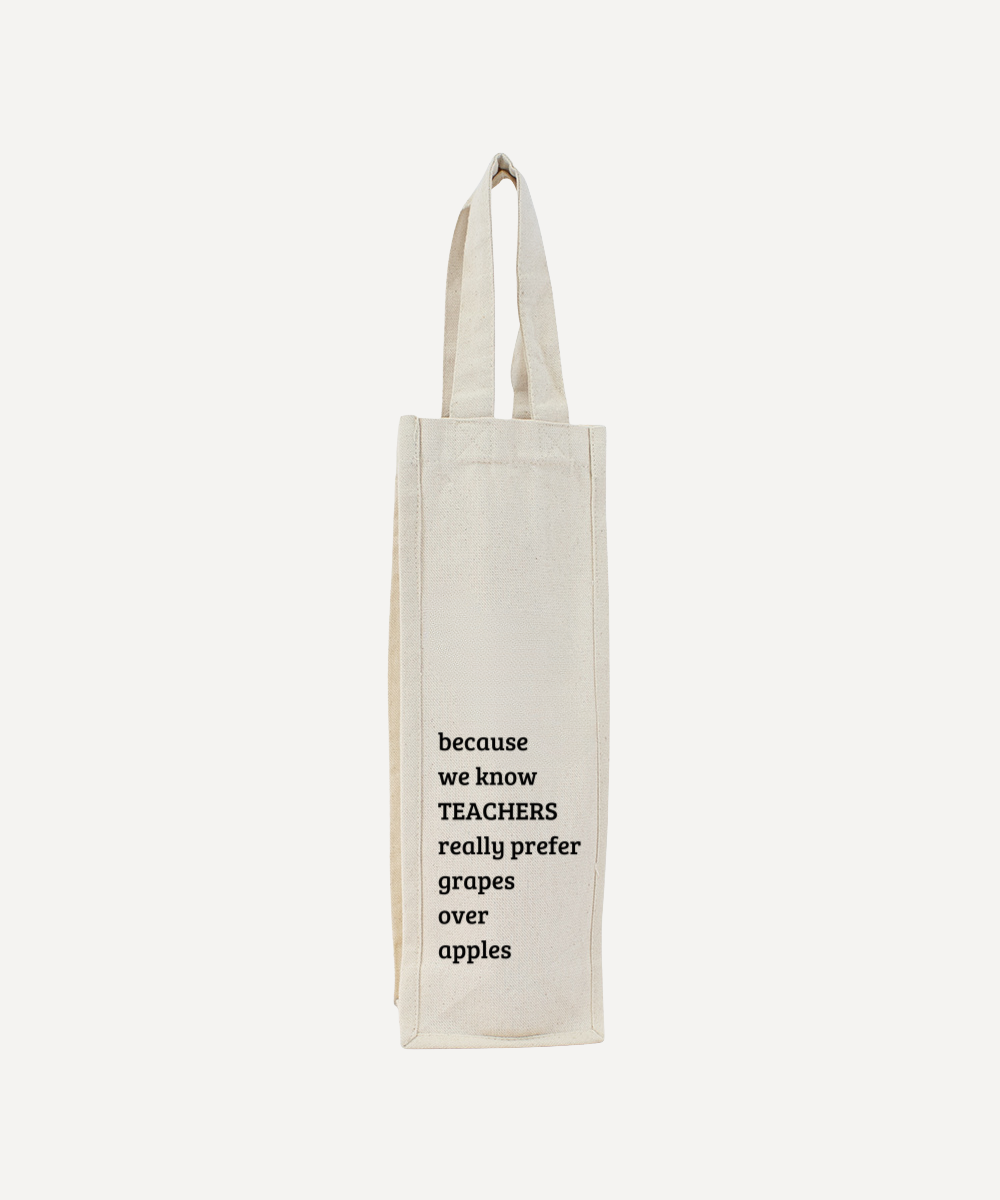 Vrijeme je da prekinemo s mitom o jabukama! Ukrasna vrećica za vino “Because we know teachers really prefer grapes over apples” (Jer znamo da učitelji stvarno više vole grožđe nego jabuke) je savršena i iskrena zahvala za kraj školske godine, Dan učitelja ili bilo koju priliku da nagradite omiljenog pedagoga.